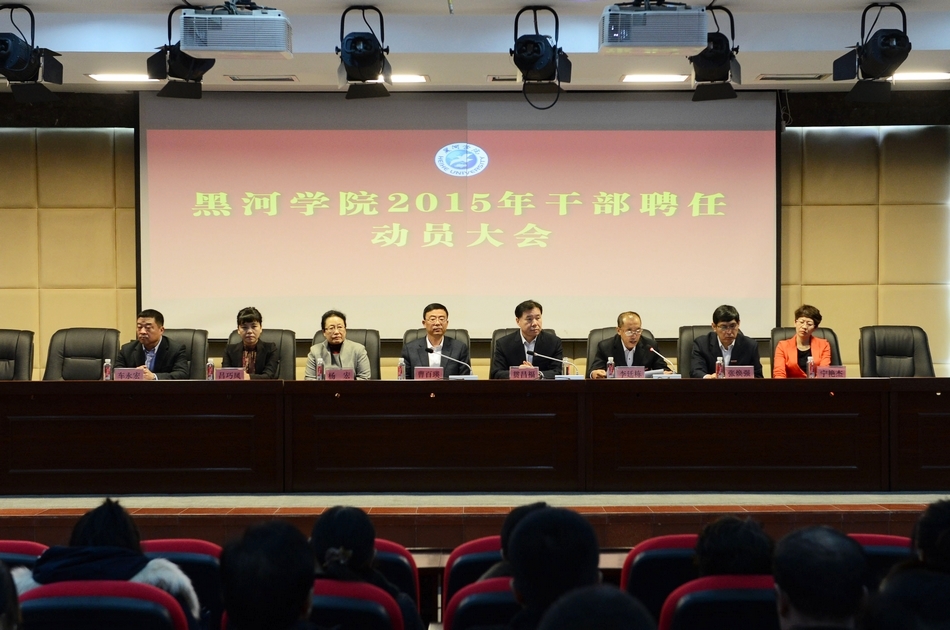 校党委副书记李廷栋宣读了《黑河学院2015年中层干部聘任工作实施方案》,对聘任条件和资格、聘任方式、聘任程序与时间安排等聘任相关事项作出了详细说明。