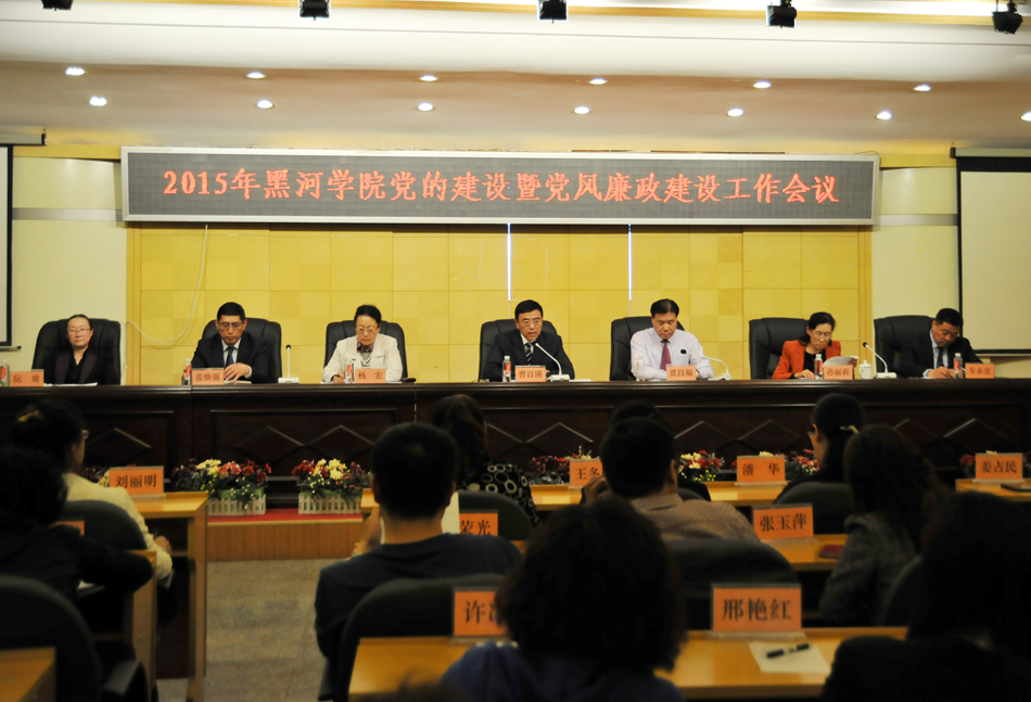 党委书记曹百瑛希望,全体党员干部要从关系学校发展命运的高度,不断强化责任、勇于担当,以“党要管党、从严治党”的政治责任感,以“踏石留印、抓铁有痕”的务实作风,以坚定不移的态度和坚强有力的措施,扎实推进学校党风廉政建设和反腐败工作,让党风廉政建设和反腐败的扎实成果,为学校改革发展稳定汇聚正能量。学校各级党组织和全体共产党员,要进一步增强责任心和使命感,以更加饱满的精神、更加和谐的状态、更加扎实的作风,同心同德、群策群力,不断开创党建和党风廉政建设工作新局面,谱写黑河学院发展的新篇章。
