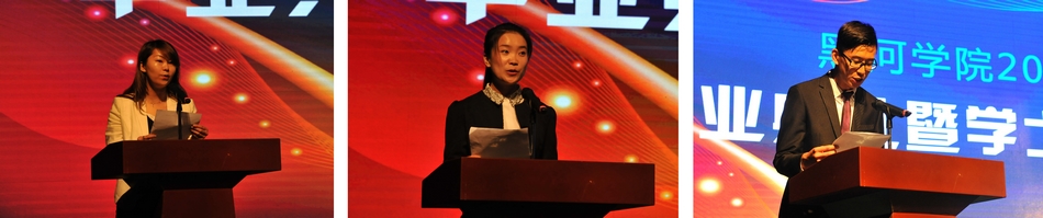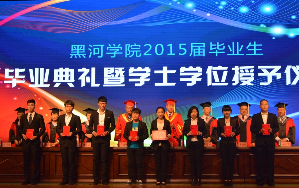毕业典礼上,党委副书记李廷栋宣读了《黑河学院2015届优秀实习生名单》和《2015届优秀毕业生党员名单》;副校长吕巧凤宣读了《黑河学院2015届本科毕业生名单》和《学士学位授予名单》。与会领导为毕业生代表颁发荣誉证书。