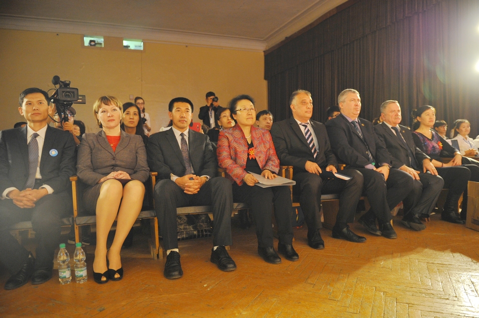 本网讯(记者 张巍 摄影 赵宇)10月17日下午,我校与俄罗斯布拉戈维申斯克国立师范大学联合举办的第六届“携手青春 共享阳光”国际青年大会在布拉戈维申斯克国立师范大学胜利闭幕。学校党委副书记杨宏、布拉戈维申斯克市常务副市长斯维特兰娜·维雅切斯拉沃夫娜·亚卡列娃、布拉戈维申斯克国立师范大学校长安德烈·瓦西里耶维奇·列依等中俄嘉宾与二百名中俄青年学生共同庆祝大会闭幕。