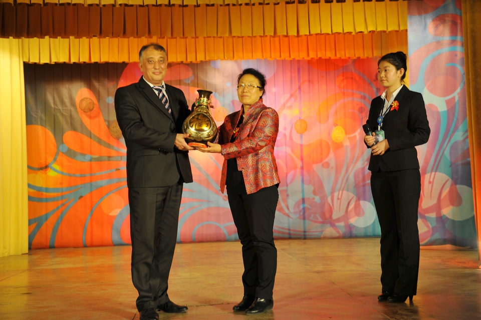 闭幕式上,我校党委副书记杨宏代表黑河学院向布拉戈维申斯克国立师范大学赠送了展现中华传统文化独特魅力的景德镇中国福字看瓶。布拉戈维申斯克国立师范大学校长安德烈·瓦西里耶维奇·列依为社会实践竞赛获奖的中俄学生颁发了获奖证书及奖品。参加闭幕式的嘉宾与两国青年学生共同欣赏了极富观赏性、感染性的中俄学生文艺展演。