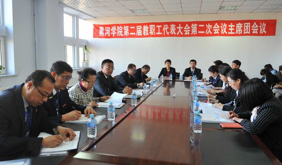 下午4时,二届二次教职工代表大会主席团第二次会议听取了各代表团讨论情况的汇报,审议通过了《校长工作报告》《工会工作报告》《黑河学院“十三五”发展规划》(草案)的决议。