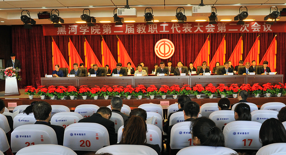 党委副书记李廷栋、副校长车永宏、总会计师宁艳杰分别作了《工会工作报告》《提案工作报告》《财务工作报告》,副校长张焕强对学校编制《黑河学院“十三五”发展规划》(草案)进行了说明。