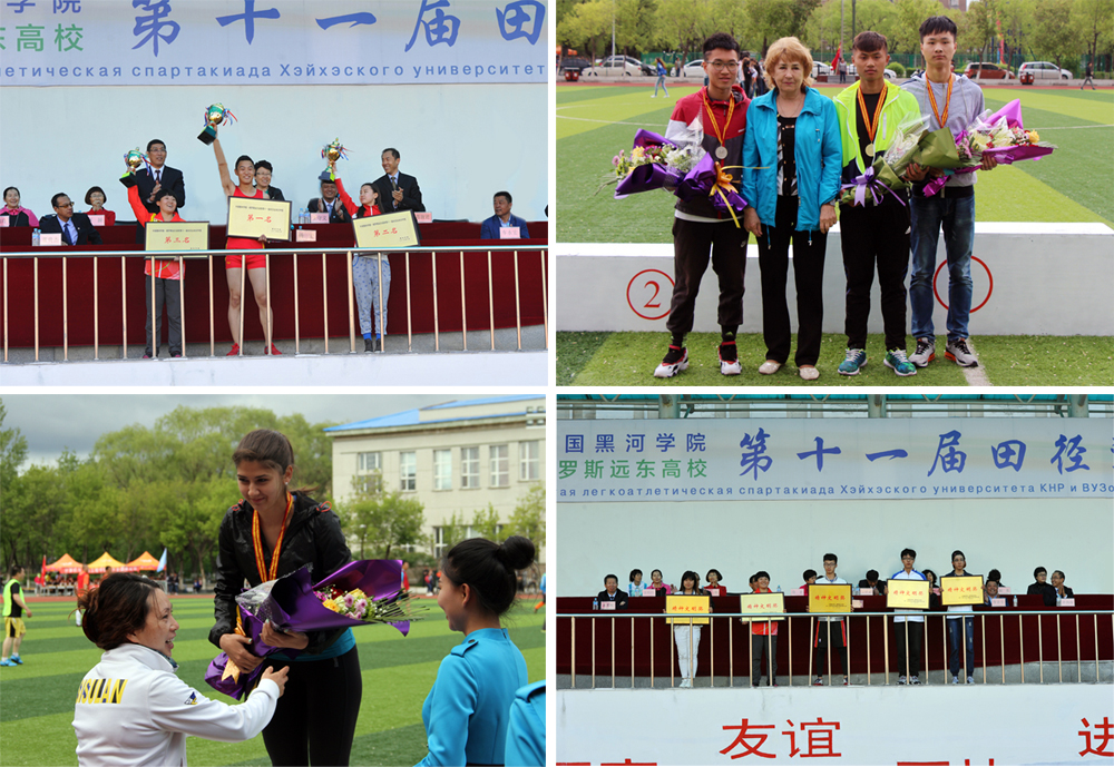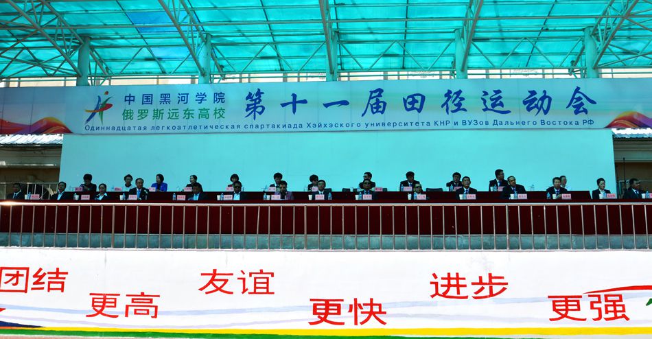 运动会上,我校800余名运动员与俄罗斯布拉戈维申斯克国立师范大学、阿穆尔国立大学、远东国立农业大学、阿穆尔肖洛姆—阿莱赫姆国立大学、东北联邦大学涅留格里分校的51名运动员在17个体育项目上同场竞技,赛场上始终洋溢着竞争、拼搏、团结、友爱的气氛。运动员们团结协作,奋勇争先,赛出了风格,赛出了水平;裁判员严守规程,认真负责,维护了比赛的公平公正;观赛同学为运动员摇旗呐喊、加油助威,展现了良好的体育道德风尚;大会工作人员恪尽职守,无私奉献,确保了运动会的圆满进行。