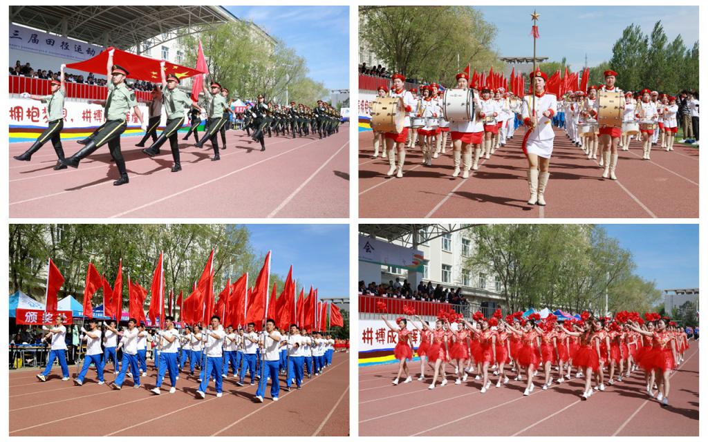 上午8时30分,伴随着激昂嘹亮的《运动员进行曲》,步伐矫健的裁判员队伍、教职工代表队、俄罗斯远东高校代表队及由各学院组成的师生方阵迈着铿锵有力的步伐依次入场,以昂扬向上的青春风姿接受主席台检阅。音乐学院管乐队奏响中华人民共和国国歌,鲜艳的五星红旗在运动场冉冉升起,迎风飘扬。