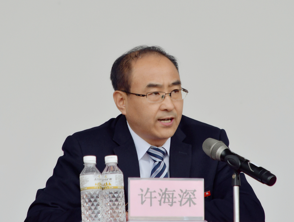 副校长许海深致开幕辞。他指出,伴随着学校的快速发展和办学水平的不断提升,学校体育工作也有了长足的进步,我校与黑河市政府签订了共建冰球馆协议,2017年2月在黑龙江省首届学生运动会中荣获男子短道速滑500米、1000米两项冠军,在第二十三届全国大学生击剑锦标赛上荣获团体第八名,在省大学生比赛中获得网球、排球赛事第三名,这些成绩的取得,充分展示了我校学生的实力和风采。学校始终坚持把体育教学、体育研究、体育训练、体育文化建设作为人才培养和校园文化建设的重要支撑,积极发挥体育运动在增强体魄、愉悦身心、锻炼意志、塑造品质以及促进精神文明建设等方面的重要作用。他表示,学校将积极对接国家“一带一路”教育行动,围绕学校“十三五”规划的目标任务,强势打造对俄教育交流特色,不断深化国际合作办学层次,加强市校战略合作,全面提升办学实力和核心竞争力,不断开创各项事业发展的新局面,为中国“一带一路”和俄罗斯“欧亚经济联盟”战略顺利实施和有效对接发挥积极作用。他希望,全校师生员工奋勇争先、顽强拼搏,赛出风格、赛出水平、赛出友谊,共同把本届运动会办成一次进取、创新、文明、团结的大会。