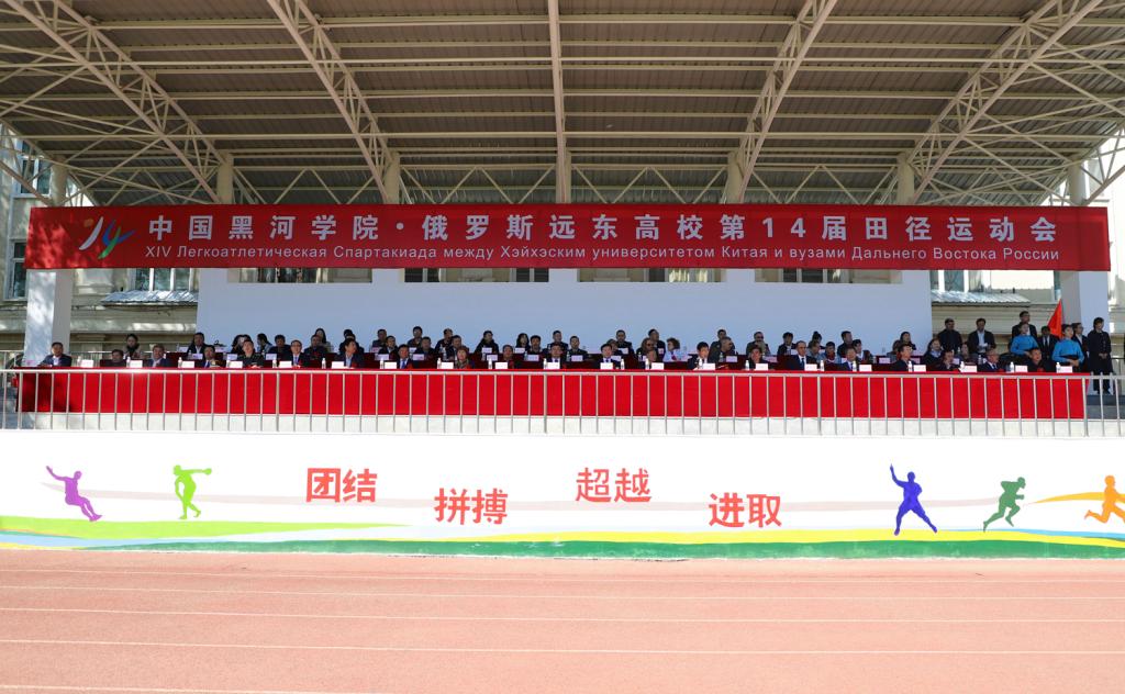 5月23—24日,中国黑河学院·俄罗斯远东高校第十四届田径运动会在我校田径运动场隆重举行,我校800余名运动员与俄罗斯布拉戈维申斯克国立师范大学、阿穆尔国立大学、远东国立农业大学、太平洋国立大学、临阿穆尔肖洛姆·阿莱赫姆国立大学、俄罗斯东北联邦大学涅留格里分校的50名运动员在17个项目中同场竞技,再续友谊。