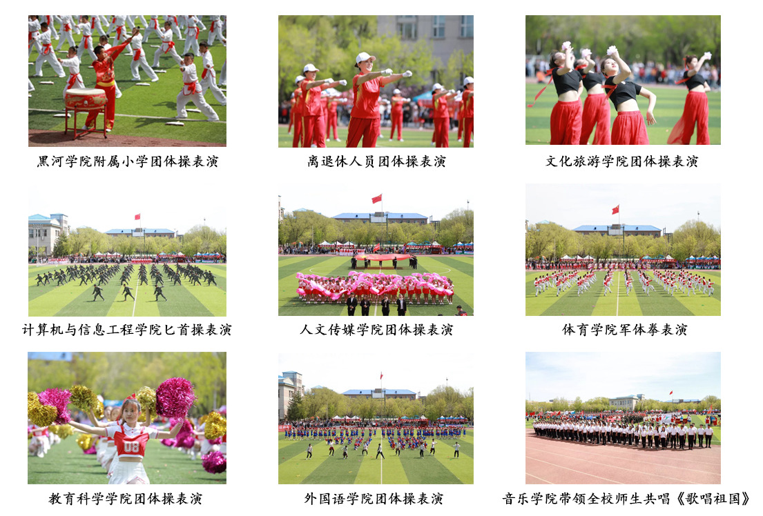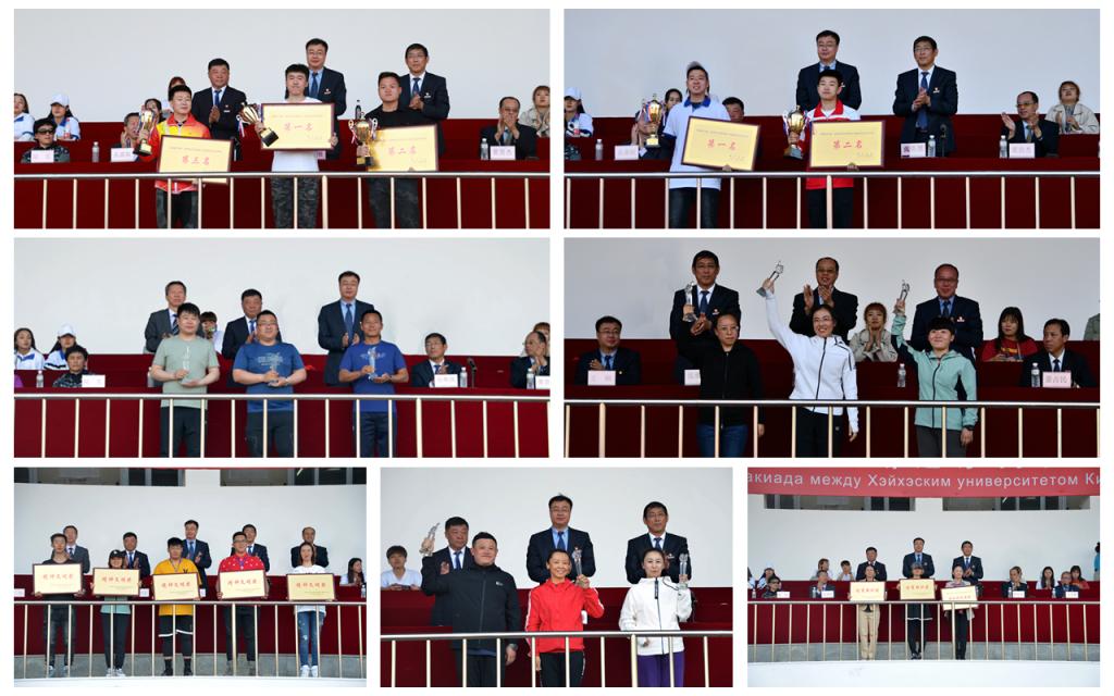本届运动会共打破8项纪录,美术与设计学院、外国语学院、文化旅游学院分获甲组团体总分前三名,体育学院2017级、2018级、2016级分获乙组团体总分前三名。机关、美术与设计学院、经济管理学院分获教师团体比赛总分前三名。外国语学院、文化旅游学院、计算机与信息工程学院、人文传媒学院、教育科学学院荣获精神文明奖;体育学院、音乐学院荣获优秀组织奖;黑河学院附属小学荣获团体操表演奖。