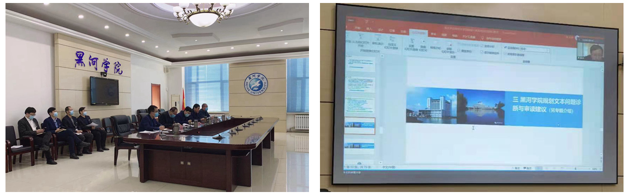 顾永安教授基于对高水平应用型大学的院校调研和对黑河学院相关文件的研读梳理,从高校规划要科学构建顶层设计体系、正确处理若干相互关系、黑河学院规划文本问题诊断与审读建议和重视调查研究工作四个方面为与会者作了一场精彩的规划培训讲座,为我校“十四五”发展规划编制工作带来了诸多指导和启示。华中科技大学教育科学研究院博士生导师魏署光教授受邀线上参加报告会。