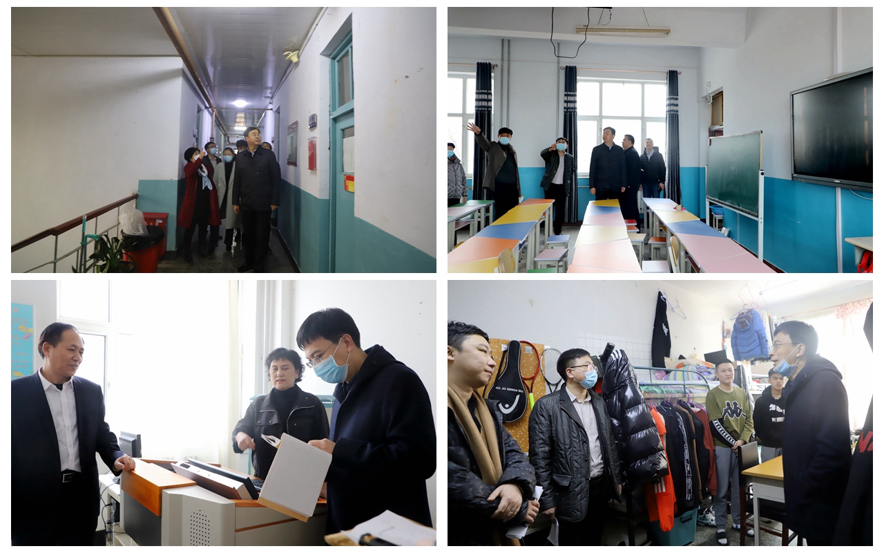 为贯彻落实省教育厅关于做好春季开学疫情防控工作部署,确保新学期工作安全、有序、高效开展,结合我校《2021年春季开学校园安全大检查方案》要求,3月15—18日,学校成立联合检查组,由党委书记王刚、校长杨敬民,党委副书记张焕强,副校长车永宏,纪委书记、省监委驻黑河学院监察专员董贵杰,副校长许海深、丛喜权带队,对学校春季开学各项工作进行调研检查。