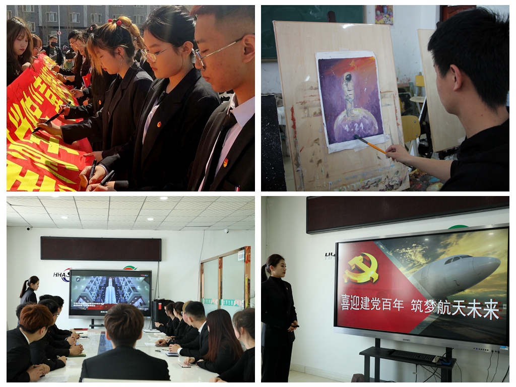 在主题签字活动中,校团委组织青年学子们纷纷在横幅上签上自己的名字,以此表达对祖国航天事业的美好祝福;在主题绘画筑航活动中,美术与设计学院学生会组织绘画、书法等专业学生用手中的纸笔为媒,为中国航天事业加油喝彩;与此同时,校学生会还在专题例会中,为各学院学生干部讲解了航天知识,使青年学子们进一步了解祖国航天事业的发展与成就,激发大家崇尚科学、探索未知、敢于创新的热情,并在明德楼前举行主题送祝福活动,真情告白祖国,表达北疆学子的爱国之志,爱航之情。