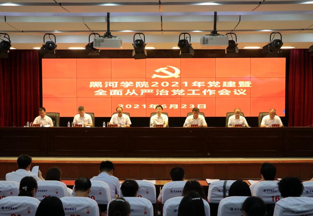 6月23日,学校在求知楼报告厅召开2021年党建暨全面从严治党工作会议。党委领导班子成员、各党支部书记、全体副科级以上干部,各学院辅导员、班主任、骨干教师、学术骨干,各职能部门及马克思主义学院全体工作人员参加会议。会议由党委副书记张焕强主持。