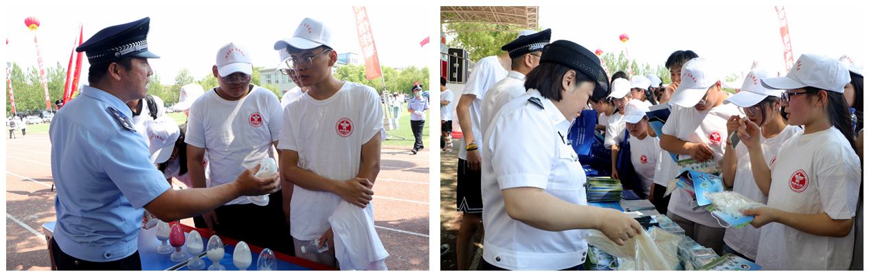活动中,全体人员奏唱《中华人民共和国国歌》;我校禁毒志愿者学生代表宣读禁毒倡仪书;全体人员参观禁毒、反诈、反恐宣传展板和仿真毒品、反恐特警装备;民警讲解当前毒品形势和识毒辨毒防毒实用知识,发放禁毒宣传手册及各类禁毒宣传品。