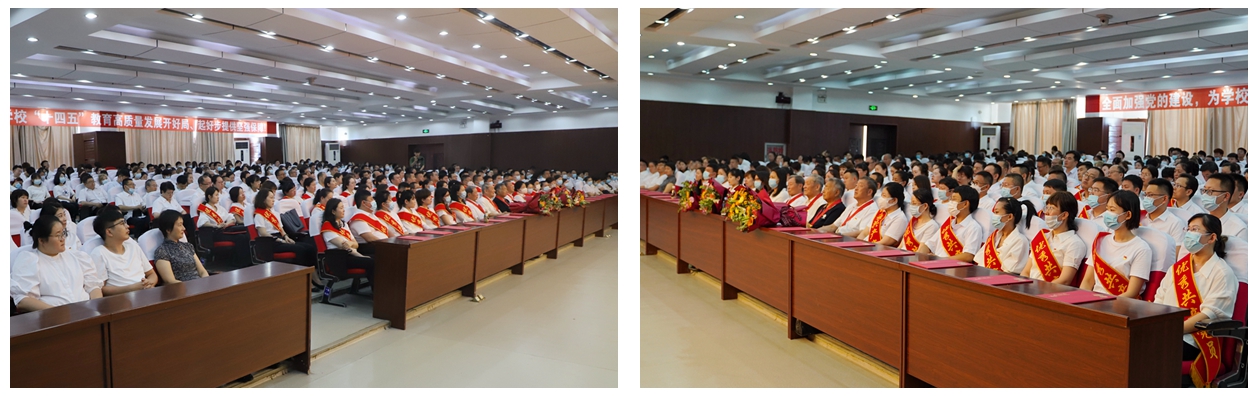 大会开始,全场起立,奏唱国歌,歌声嘹亮,催人奋进。近年来,学校各级党组织和广大党员以习近平新时代中国特色社会主义思想为指导,深入学习贯彻党的十九大和十九届历次全会精神,坚持党对学校工作的全面领导,充分发挥基层党组织战斗堡垒作用和党员先锋模范作用,涌现出了一大批优秀个人和先进集体。会上,与会领导宣读了“‘光荣在党50年’纪念章获得者名单”、“关于表彰优秀共产党员、优秀党务工作者和先进基层党组织的决定”、“关于表彰庆祝中国共产党成立100周年系列活动的决定”,并向获奖单位及个人颁发了奖牌和荣誉证书。