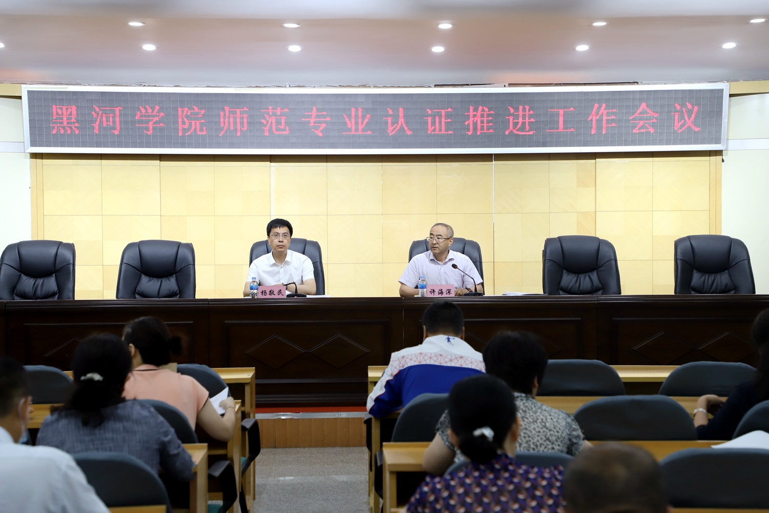 7月1日,学校在明德楼五楼多功能厅召开黑河学院师范专业认证推进工作会,党委副书记、校长杨敬民,副校长许海深,师范专业学院领导及专业负责人,相关职能部门负责人,学校教学督导专家参加会议。会议由副校长许海深主持。