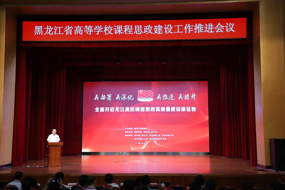 7月7日,由黑龙江省教育厅主办、我校及哈尔滨工业大学承办的“黑龙江省高等学校课程思政建设工作推进会议”在黑河市举行。会议以“学习贯彻习近平总书记庆祝中国共产党成立100周年大会重要讲话精神,深入推进高校课程思政高质量建设”为主题,总结回顾《高等学校课程思政建设指导纲要》实施一年以来我省高校课程思政建设的进展成效,部署下一阶段推进课程思政建设的重点任务。黑龙江省教育厅党组书记、厅长赵国刚,我校党委副书记、校长杨敬民出席会议,会议由省教育厅二级巡视员丁哲学主持。