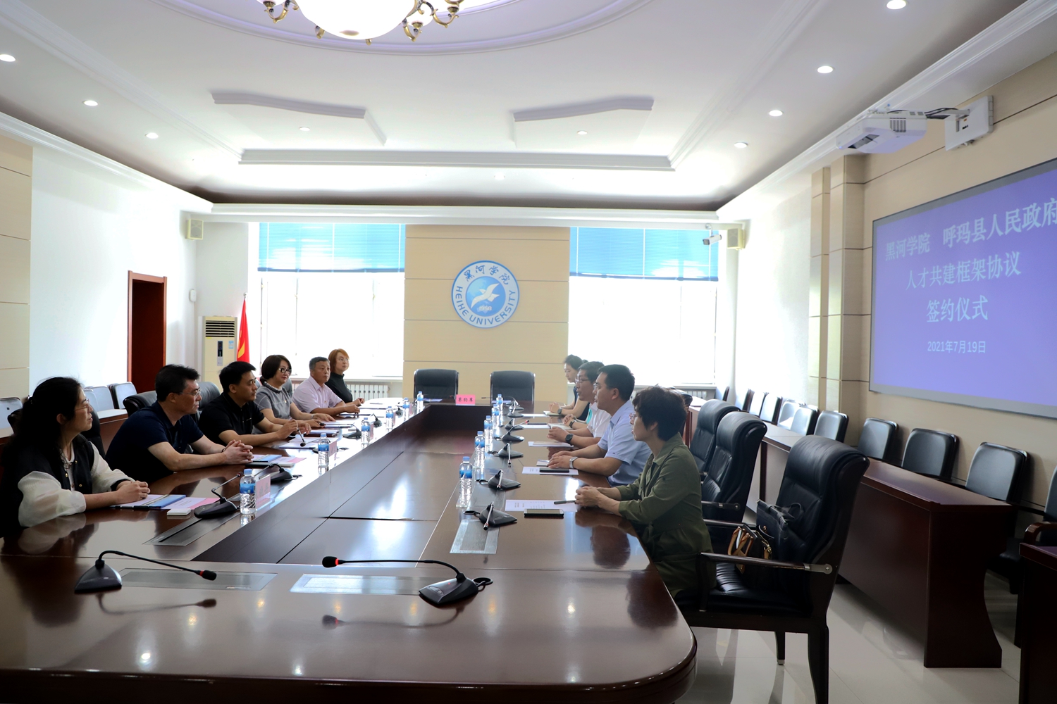 7月19日,我校与呼玛县人民政府人才共建框架协议签约仪式在明德楼二楼会议室举行,未来校地合作双方将深度对接资源优势,加大人才培养引进力度,共同推动呼玛县转型发展,实现校县双方合作双赢发展。呼玛县政府县长魏志民,县委常委、宣传部长赵洁,县委常委、组织部长王中尉,县委组织部副部长苏晓丹,县人力资源和社会保障局局长王金英,学校驻村第一书记冯笑;我校党委副书记、工会主席张焕强,党委委员、组织部部长安全义及教务处、招生就业处负责人参加签约仪式。