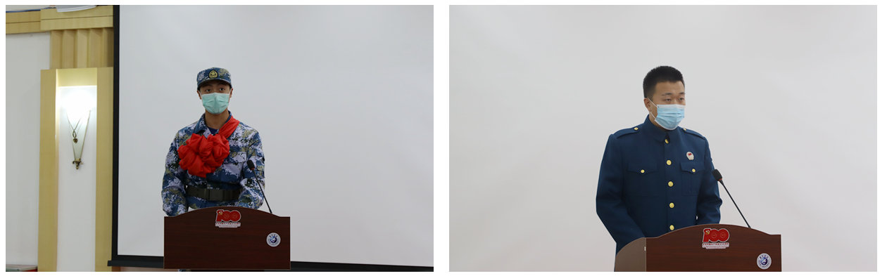 2017级美术与设计学院王晖同学代表全体应征入伍学生,感谢学校的培养和老师们的支持与鼓励,表达了即将进入军营报效祖国的激动与自豪,并承诺在部队里将不惧艰难、遵守纪律,为母校争光、为祖国争光。退役复学学生代表、2019级计算机与信息工程学院王星义同学,分享了自己的军旅生活,寄语准新兵们把满腔的爱国热血报效给祖国,带着北疆学子的荣光在军营中建立功勋、开创辉煌。
