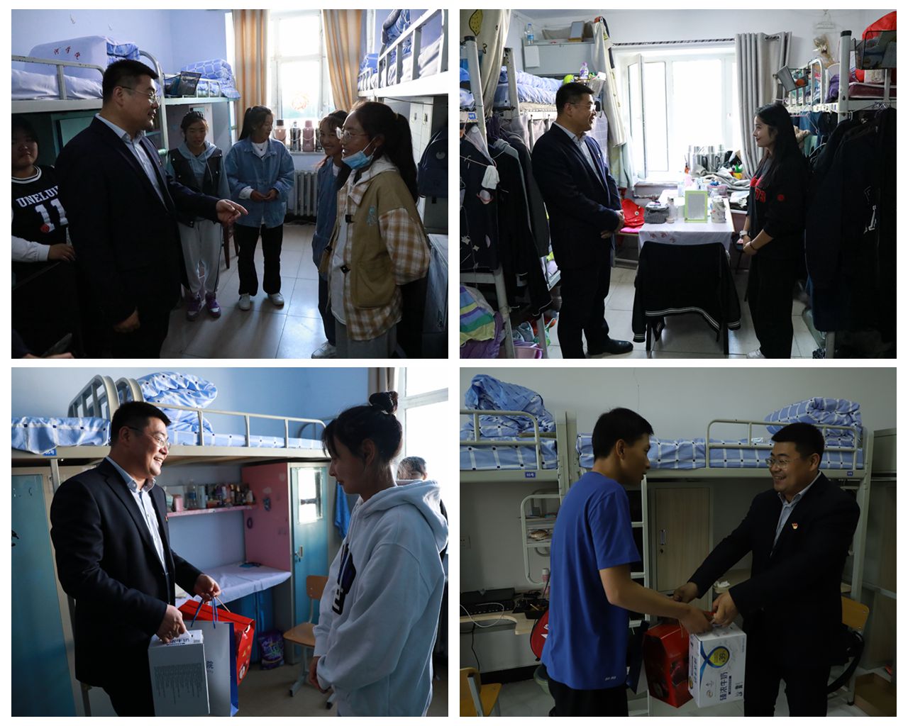 在中秋佳节来临之际,9月20日,学校党委副书记王春雷在学生工作部(处)负责人,各二级学院负责人、辅导员的陪同下,代表学校深入部分学生寝室,走访慰问2021级家庭经济困难及少数民族学生,向学生致以节日问候和祝福,并送上中秋爱心礼包。