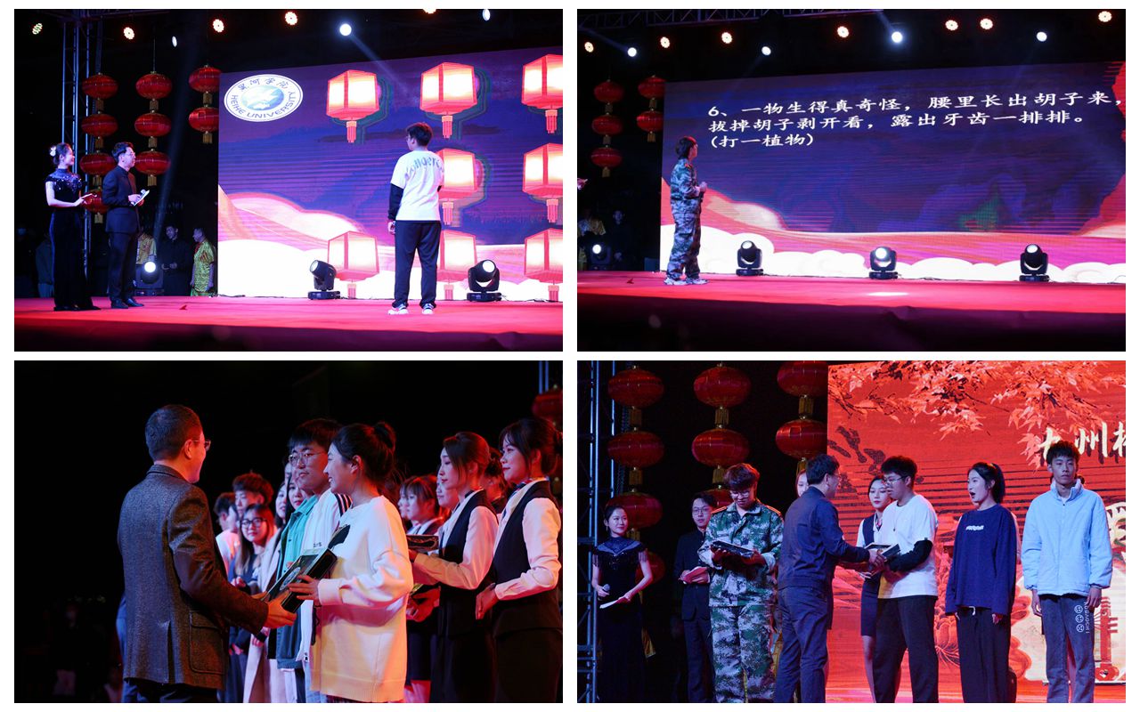 此外,晚会特别设置了猜灯谜环节,师生们兴致勃勃,踊跃参加,有的聚精会神地认真思考,有的口中念念有词,有的相互热烈讨论,纷纷抢猜谜语,可谓是八仙过海,各显其才。党委书记杨弘宇、校长杨敬民为获奖学生颁发了学校特别准备的中秋月饼。现场气氛热烈,欢声笑语不断,洋溢着祥和喜庆的节日气氛。