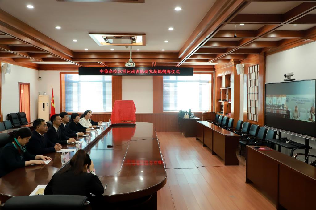 副校长谢慧在讲话中指出,俄罗斯是冰雪体育运动强国,阿穆尔国立大学的冰雪体育教学、训练、科研具有较强的传统优势,希望“中俄高校冰雪运动训练研究基地”在为中俄高校共同开展中俄大学生冰雪运动训练研究,组织中俄大学生冰雪项目运动竞赛,联合培养冰雪体育人才等方面提供互学、互鉴、共赢的合作平台,为中俄冰雪运动交流与合作贡献力量。