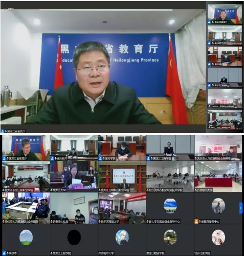12月14日,黑龙江省教育厅、人力资源和社会保障厅共同召开2022届全省普通高校毕业生就业创业工作网络视频会议。省委教育工委副书记、省教育厅党组成员、副厅长解宗军;省人力资源和社会保障厅党组成员、副厅长左志斌出席会议并讲话,省教育厅二级巡视员、高校学生处处长高铁春主持会议。学校党委书记杨弘宇,党委副书记、校长杨敬民,党委副书记王春雷,副校长许海深在明德楼三楼会议室分会场参会,相关部门、各二级学院负责人、毕业班辅导员及招生就业处全体人员分别在线上线下参加会议。