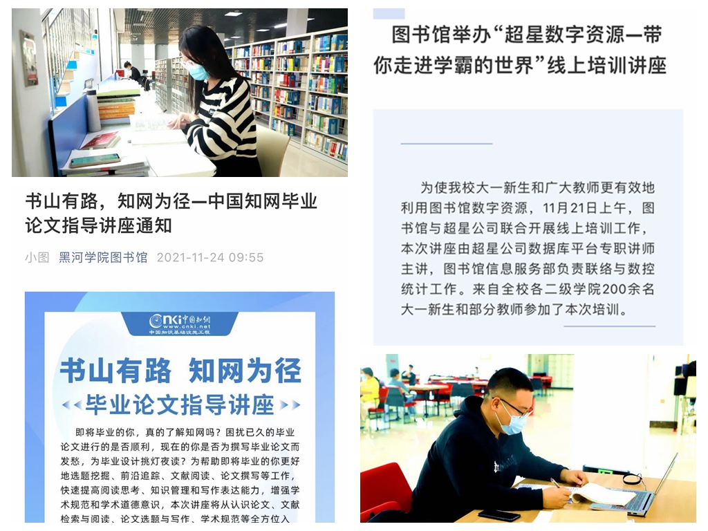 为了满足广大师生疫情防控期间科研工作及在家阅读所需数字资源的需要,图书馆免费为师生提供数字阅读及文献查询、下载等服务,并增设辅助教师科研工作和学生毕业论文所需文献传递服务的两个”学科服务群“,真正做到疫情期间“闭馆不闭网”。“书山有路 知网为径”毕业论文指导讲座、“超星数字资源——带你走进学霸的世界”等线上培训讲座,帮助毕业生提高毕业论文的质量和水平,使大一新生和教师们更有效地利用图书馆数字资源。为助力考研学子安心高效复习,图书馆克服在校人员少、任务重的实际困难,按照疫情防控要求,严格对馆内进行消毒消杀,通过把控人流进馆、间隔阅读等举措,全力打好疫情防控与读者服务“组合拳”。