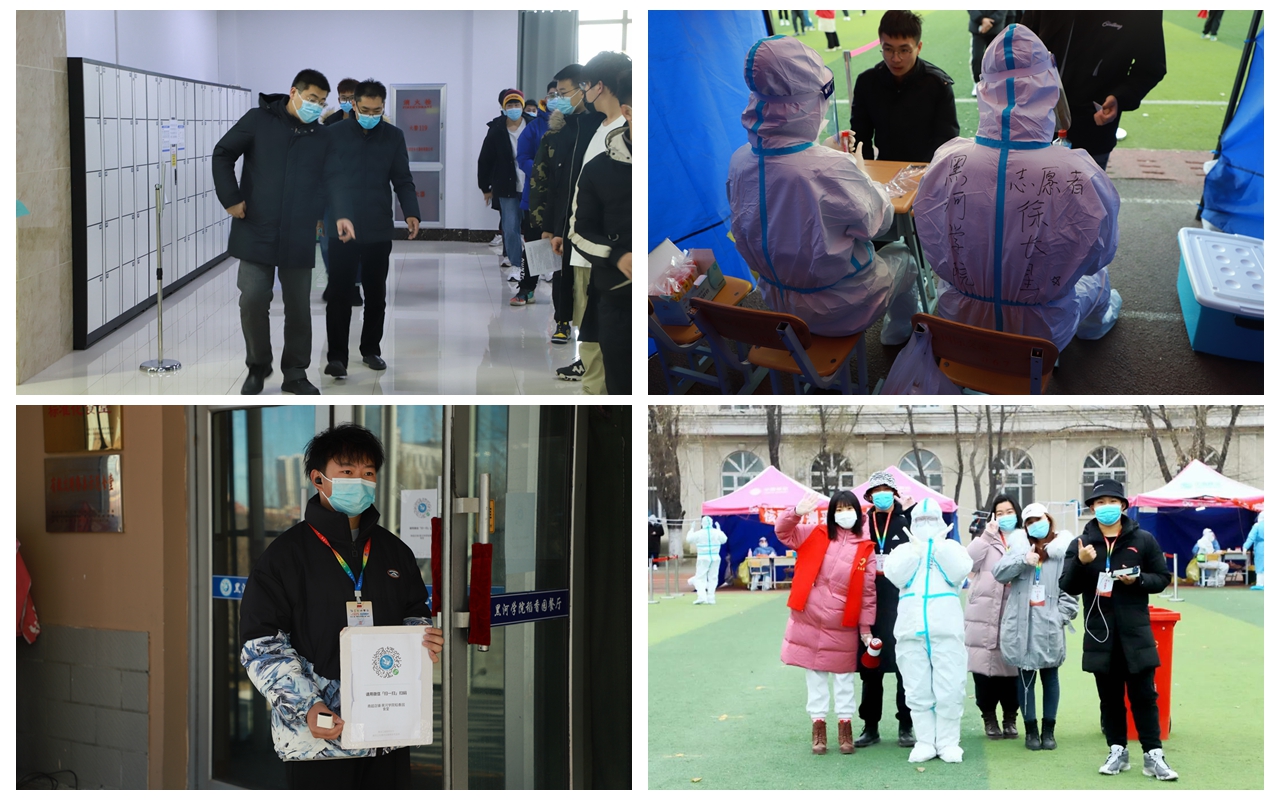 时钟指向了凌晨3点。十一月的黑河,夜间气温下降到零下8度,学生工作部负责人带领学工战线人员提前到达核酸检测现场,部署安排检测工作,确保整个检测流程科学合理、运行顺畅。核酸检测点的大帐篷外,他们一边拿着手机对话,一边用目光在长队里不停搜索,确保每个应检同学到位,在他们心里,只为一个朴素的愿望,“全体学生核酸检测报告:阴性!”