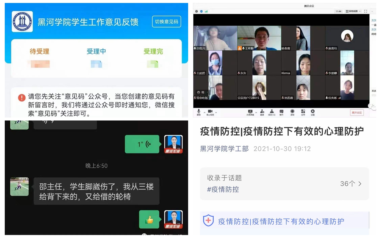 “导儿,这次疫情什么时候能过啊?感觉心里很慌呀!”“导儿,好担心期末考啊!”此刻的书记、院长、辅导员老师化身成校园“知乎”,他(她)们耐心解答学生们的疑惑,帮助他们增强战胜疫情的坚定信念。与此同时,大学生心理健康教育咨询中心开通了线上预约、咨询通道、设立24小时心理热线电话;省教育厅思政处也第一时间为学校推荐了心理健康学习视频,公布了黑龙江省高校心理专家热线,为学生提供疫情期间的心理咨询服务。