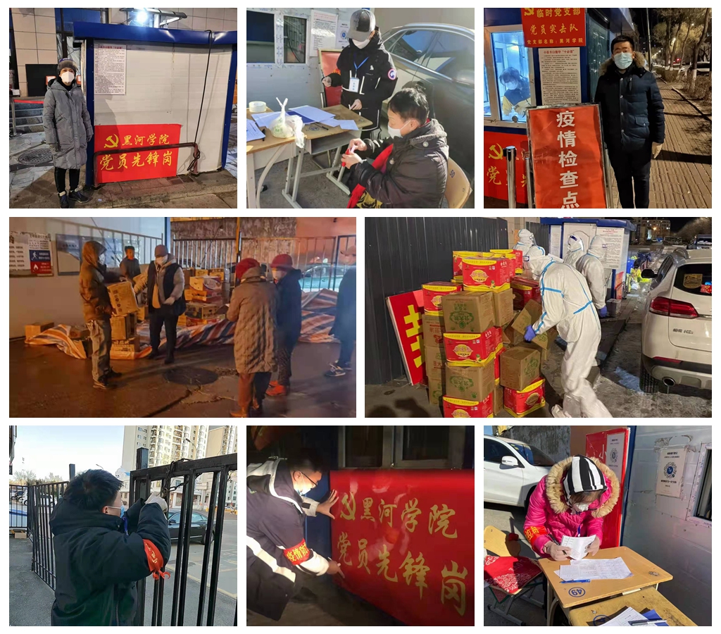 疫情就是命令,防控就是责任。党委(校长)办公室迅速行动,积极落实工作部署,草拟文件、沟通上级机关、协调各部门开展工作、督办各项工作落实。各分工会协助校工会积极采集师生员工防疫信息,真正做到疫情防控底数清、情况明;全校基层党组织闻令而动、听令而行,各二级学院领导班子迅速转换角色,坚守工作岗位,及时制定防控预案,建立防控责任体系,线下统筹安排、线上研讨部署,切实强化组织领导,有力扛起疫情防控的“硬核”担当;17个党总支,1个直属党支部,从10月28日开始,按照“社区吹哨、单位报到”的要求,重心下移、力量下沉,自觉接受爱辉区街道 (社区)党组织的统一调度和安排,奔赴金融佳苑小区、财政小区、南湖雅苑、企联大厦等六个疫情防控卡口,全面承担起小区封闭值守任务、封控小区包保任务和全面消杀任务,全力构筑起防控疫情蔓延的“社区防线”,让党旗在防控疫情斗争一线高高飘扬。