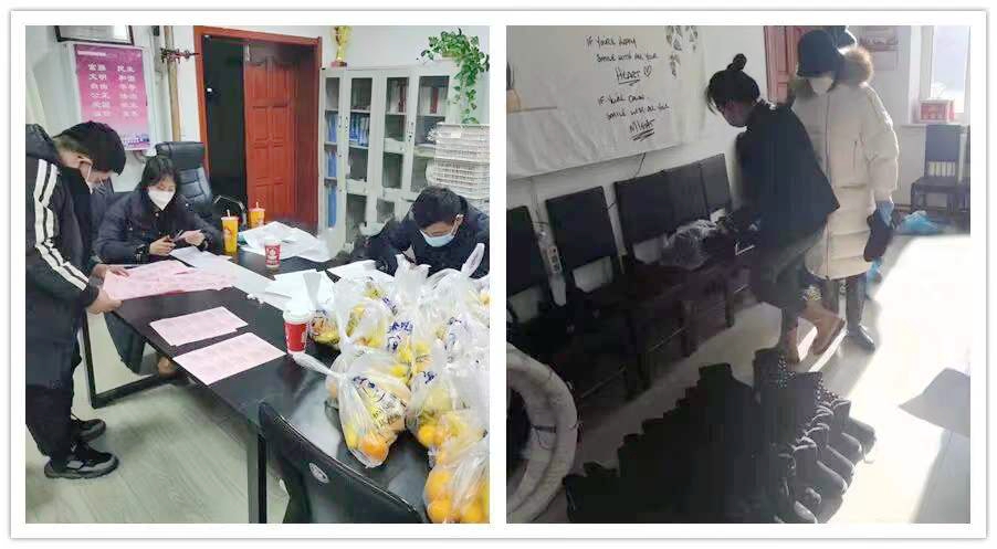 面对突发疫情,校园内社会化企业积极响应号召,爱心助力校园抗疫。黑龙江中快餐饮有限公司向学校捐赠资金3万元、黑龙江温馨食品有限责任公司捐赠方便面50箱、校园水果超市捐赠纯净水400箱,其它社会化企业也主动向师生捐赠各种食品和水果。在看到员工封校前没有携带棉鞋等随身物品的情况,后勤管理处相关人员自发捐款1.3万元与市内各大商超沟通,购买了270双棉鞋,解决了员工保暖问题。同时,又多方筹措采购行李150套和200多套洗漱用品,确保员工住校生活得到基本保障。