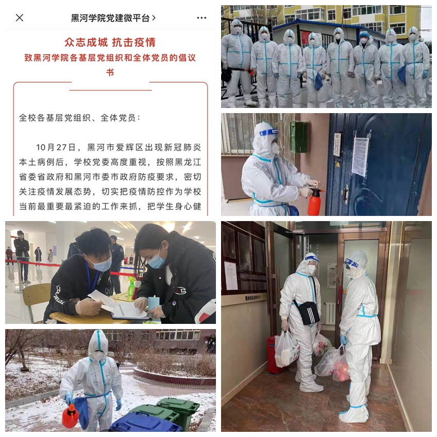 10月30日,学校党委发出《众志成城抗击疫情 致黑河学院各基层党组织和全体党员的倡议书》,要求全校各级党组织和广大党员、干部履行职责,冲锋在前,奋力战斗在疫情防控最前线,以实际行动发挥基层党组织战斗堡垒作用,展现共产党员的先锋模范形象。