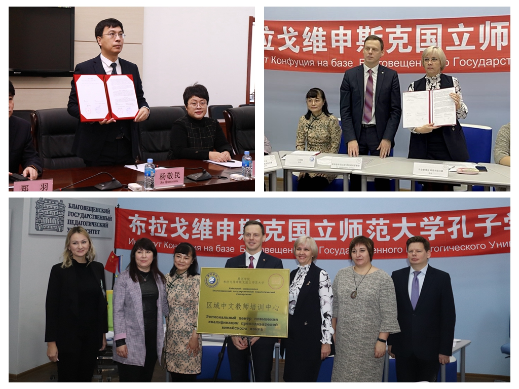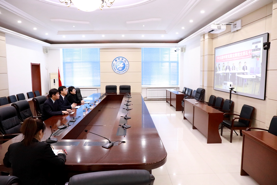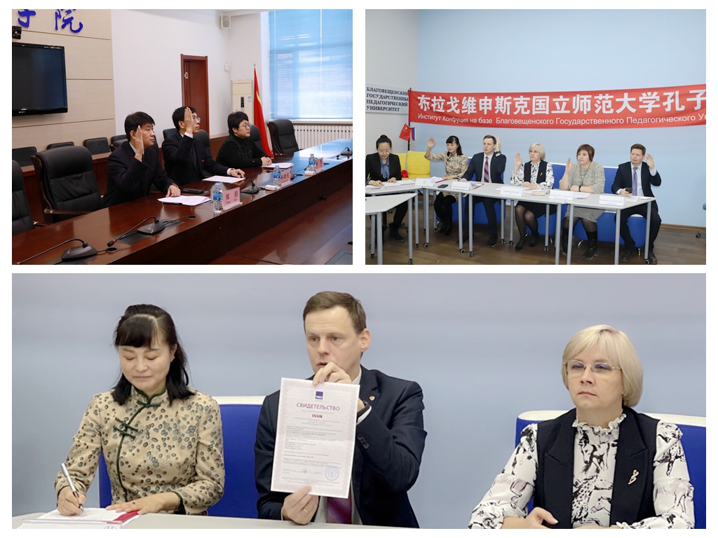12月17日,我校与俄罗斯布拉戈维申斯克国立师范大学共建的孔子学院第十六届理事会暨区域中文教师培训中心揭牌仪式以视频方式举行。学校党委副书记、校长杨敬民,党委委员、副校长谢慧;俄罗斯布拉戈维申斯克国立师范大学校长维拉·维塔丽耶夫娜·肖金娜、副校长谢列兹尼奥娃·奥莉加·弗拉基米罗夫娜与两校国际交流合作处负责人,孔子学院中方、外方院长及布拉戈维申斯克市第五中学教师代表参加会议。