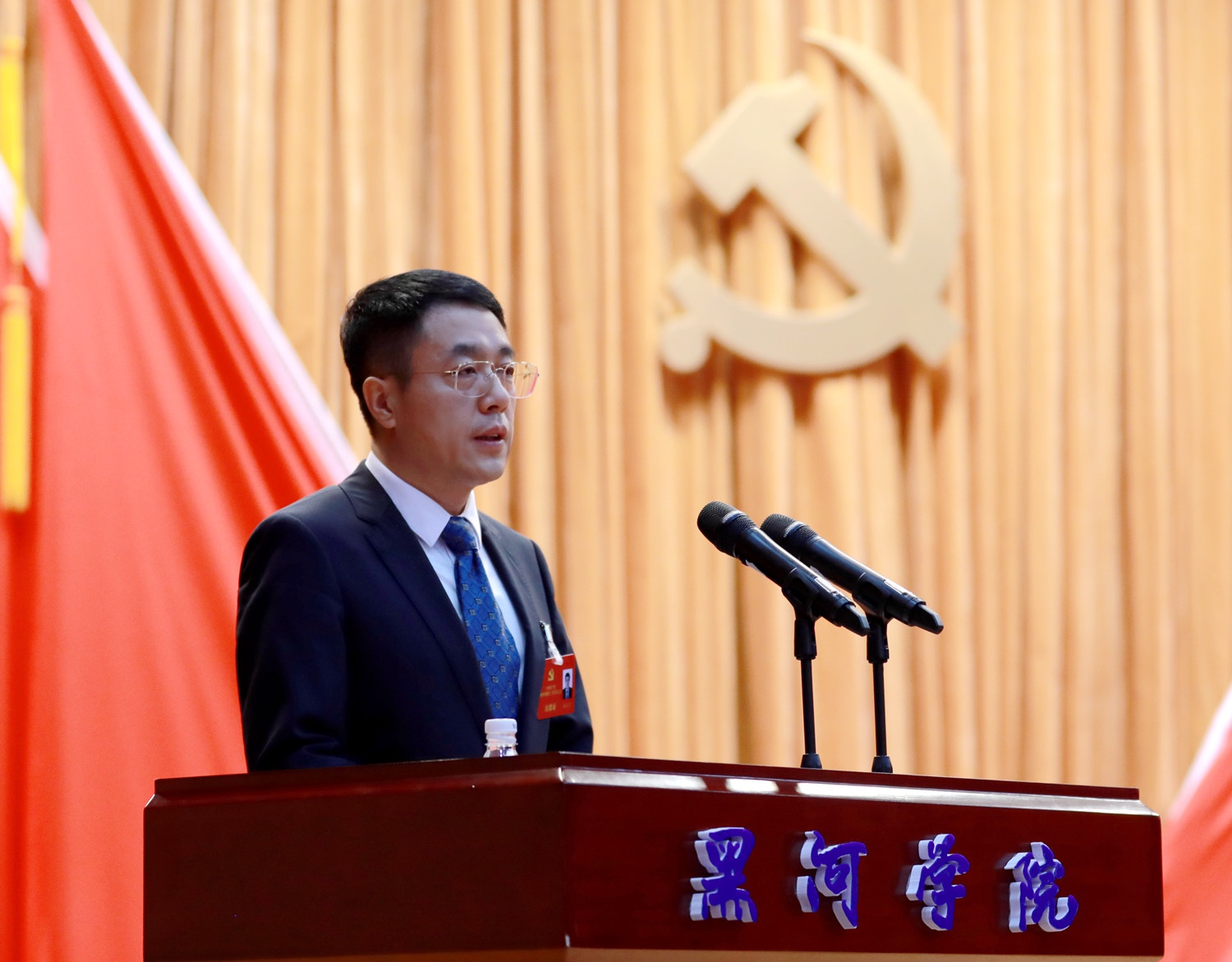 他代表黑河市委,对即将选举产生的新一届党委班子和学校工作提三点希望。第一,希望学院提高政治站位,坚守为党育人、为国育才的正确方向。要把促进学生健康成长成才作为学校一切工作的出发点和落脚点,坚定办学治校的正确方向;要持之以恒抓好思想政治教育,积极引导学生扣好人生最重要阶段的扣子;要坚定不移抓好意识形态工作,牢牢把握学校意识形态工作领导权、管理权、话语权;要进一步树立现代教育理念,教育引导学生求真理、悟道理、明事理;要加强学生品德修养,教育引导学生成为有大爱大德大情怀的人。第二,希望学院不断改革创新,走好校地融合、共赢发展之路。要紧密结合双方发展需要,完善共建、共进、共享校地融合机制;要进一步发挥人才智力优势,深化应用对策研究,加强科研资政服务;要进一步发挥科研平台优势,加快推进应用研究与成果转化,实现政产学研多领域全方位合作;要进一步发挥对外交流广泛优势,为黑河推进更高水平对外开放当好桥梁和纽带。第三,希望学院筑牢党建之基,做到政治立校、从严治校。要坚决捍卫“两个确立”,不断增强“四个意识”、坚定“四个自信”、做到“两个维护”;要发挥好“把方向、管大局、作决策、促落实”重要作用,严格落实党委领导下的校长负责制,确保将党对学校事业的重大部署和各项要求执行到位;要把握高等教育发展规律,推动内涵式发展、高质量发展;要提升党内政治文化,狠抓党风廉政建设,全力做好学校统战群团工作,打造风清气正的良好政治文化和政治生态。