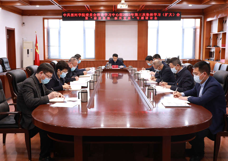 5月12日,党委书记杨弘宇在明德楼308会议室主持召开校党委理论学习中心组第三次集体学习(扩大)会暨“解放思想振兴发展”专题研讨会。学校党政领导班子成员参加会议。