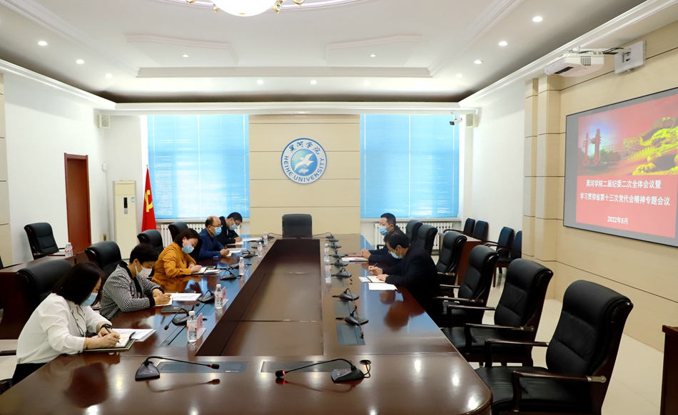 会议重点学习了省委书记许勤同志在省第十三次党代会上的报告和省委常委、省纪委书记、省监委主任张巍同志代表十二届省纪委向大会作的工作报告精神;传达了省纪委召开的2021年度全省本科高校纪检监察机构述职会议暨2022年1-4月工作调度会议精神;审议并通过了《黑河学院纪委(监察专员办公室)2022年度工作要点》《中共黑河学院纪律检查委员会全体会议议事规则》和《黑河学院纪委委员联系二级党组织履行职责发挥作用的实施办法》。