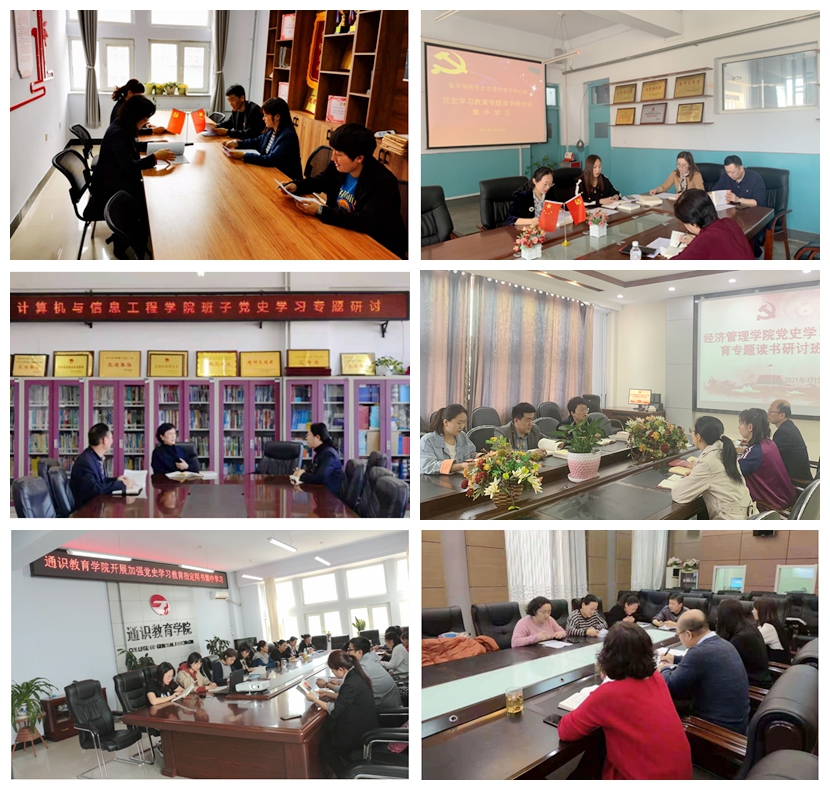 文化旅游学院、音乐学院、计算机与信息工程学院、经济管理学院、通识教育学院、国际教育学院等党总支紧密结合工作实际,开展形式多样、内容丰富的专题学习活动,多措并举,集中学、专题议、潜心悟、抓落实,确保党史学习教育入脑入心。