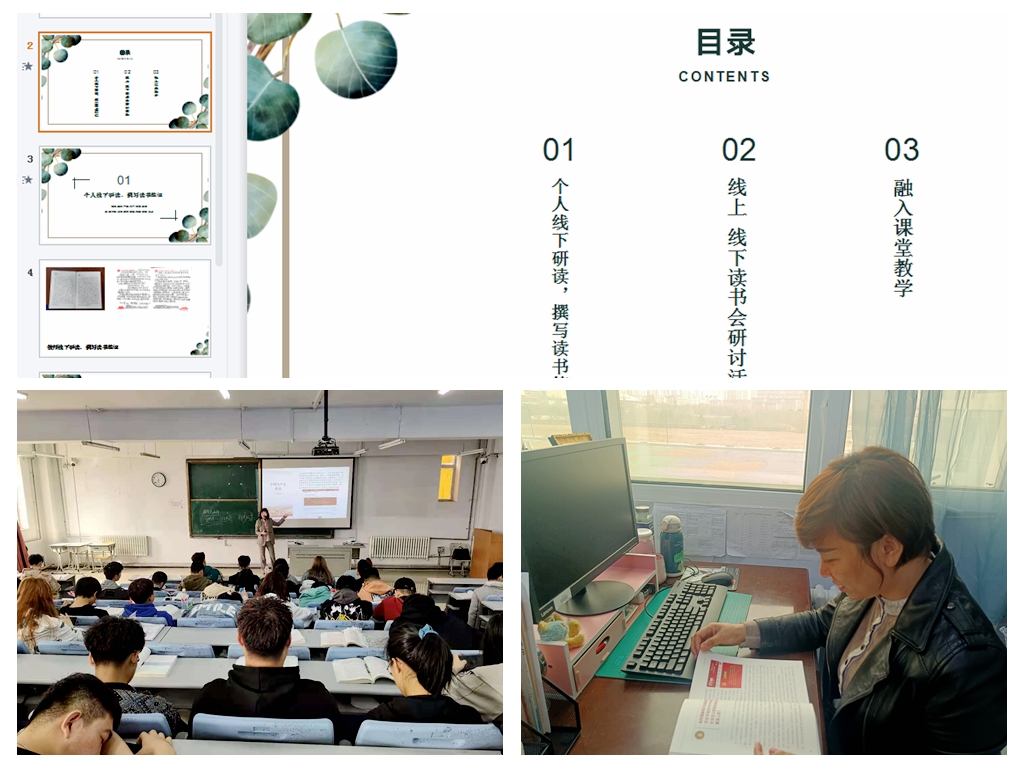 马克思主义学院直属党支部以教研室为单位开展党史学习教育指定书目专题读书会,制定详细学习计划,组织个人线下研读,撰写读书笔记,开展线上+线下读书会及分散交流研讨,将党史学习教育制定用书学习成果融入课堂教学,扎实推进学习进课堂、进学生头脑。