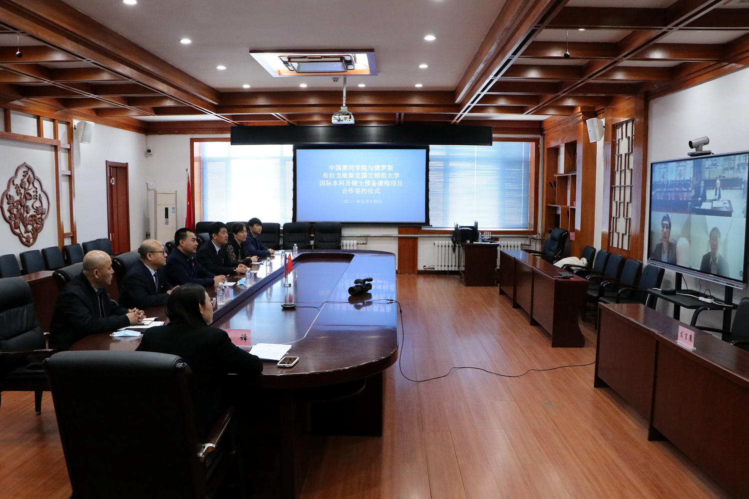 5月14日,我校与俄罗斯布拉戈维申斯克国立师范大学合作协议签约仪式,以网络视频连线的形式在明德楼三楼会议室举行。俄罗斯布拉戈维申斯克国立师范大学校长维拉·维塔丽耶夫娜·肖金娜、外事处处长库哈连科·尼古拉·弗拉基米洛维奇;校长杨敬民、副校长丛喜权及体育学院、国际教育学院、教育科学学院、计算机与信息工程学院和国际交流合作处负责人参加签约仪式。