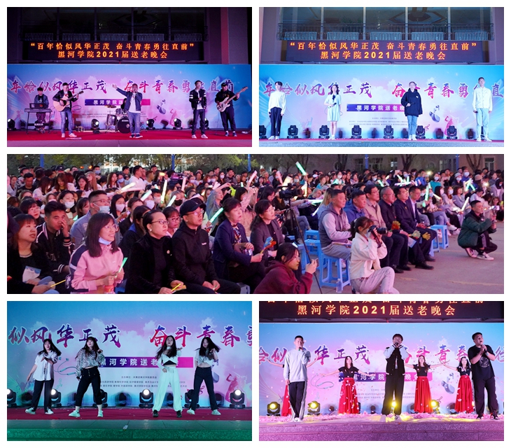 今夜校园余音绕梁,巍巍学府璀璨生光。5月19日,由共青团黑河学院委员会主办的“百年恰似风华正茂 奋斗青春勇往直前”黑河学院首场2021届首场毕业生文艺晚会在明德楼前倾情上演,党委副书记张焕强、副校长车永宏及宣传统战部、组织部、学生工作部(学生处)负责人同各学院教师、毕业生代表800余人共享视听盛宴。