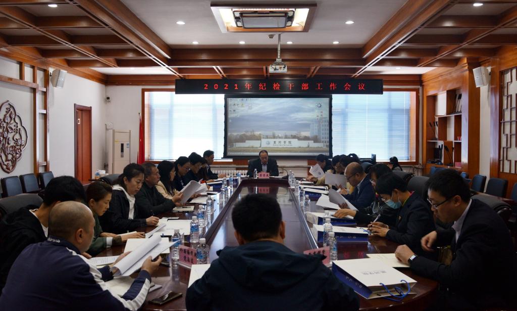 5月19日下午,学校纪委在明德楼三楼会议室召开2021年二级单位纪检委员工作会议,17个党总支、直属党支部纪检委员和纪检监察全体工作人员参加会议。会议由纪委书记、省监委驻黑河学院监察专员董贵杰主持。