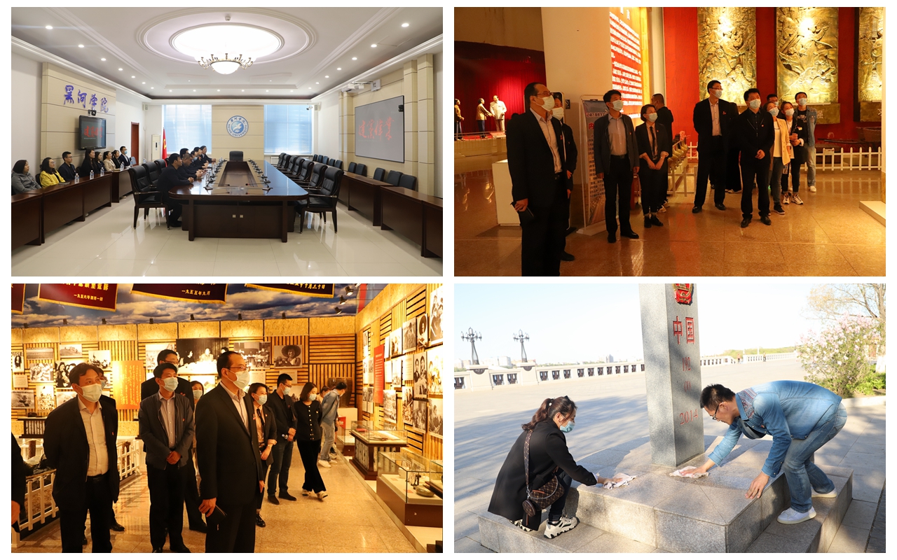 5月21日上午,机关党总支第四党支部和教育科学学院党总支在明德楼二楼会议室开展了“回顾辉煌历史,传承红色基因”主题党日活动,全体党员共同观看了红色影片《建党伟业》,重温中国共产党建党历史,从中汲取砥砺前行的奋进力量。21日下午,全体党员走进瑷珲知青博物馆,感受知识青年植根边疆、奉献边疆,在火红的知青岁月里唱响的青春赞歌。纪委书记、省监委驻黑河学院监察专员董贵杰希望党员同志们通过学习知青文化,重温知青岁月,对这段历史能够有更深的了解与体会,在今后的工作中要弘扬知青们不畏辛苦、无私奉献的精神,为学校高水平高质量发展作出更大贡献。活动后,全体党员来到中国192号界碑前,仔细擦拭界碑,坚定了边疆高校党员教师育人戍疆的理想信念,表达了他们为党的事业奋斗终生,以更加饱满的热情和高昂的斗志投身教育事业,努力培养爱国爱疆、担当奉献的社会主义建设者和接班人的决心。