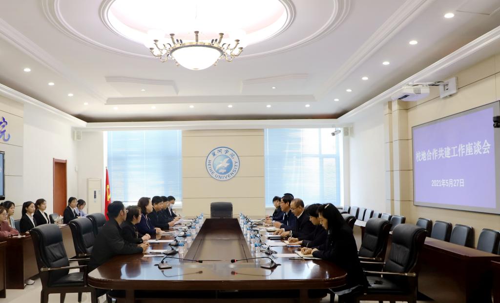 会前,校长杨敬民同魏学敏一行举行见面会,他强调黑河学院担负着为地方培养留得住、用得上人才的重任,未来学校将加大力度持续推进校地深入合作,希望孙吴县能进一步扩大招聘岗位数量,校地协同为地方培养戍疆人才,为服务边疆经济社会发展做出最大贡献。