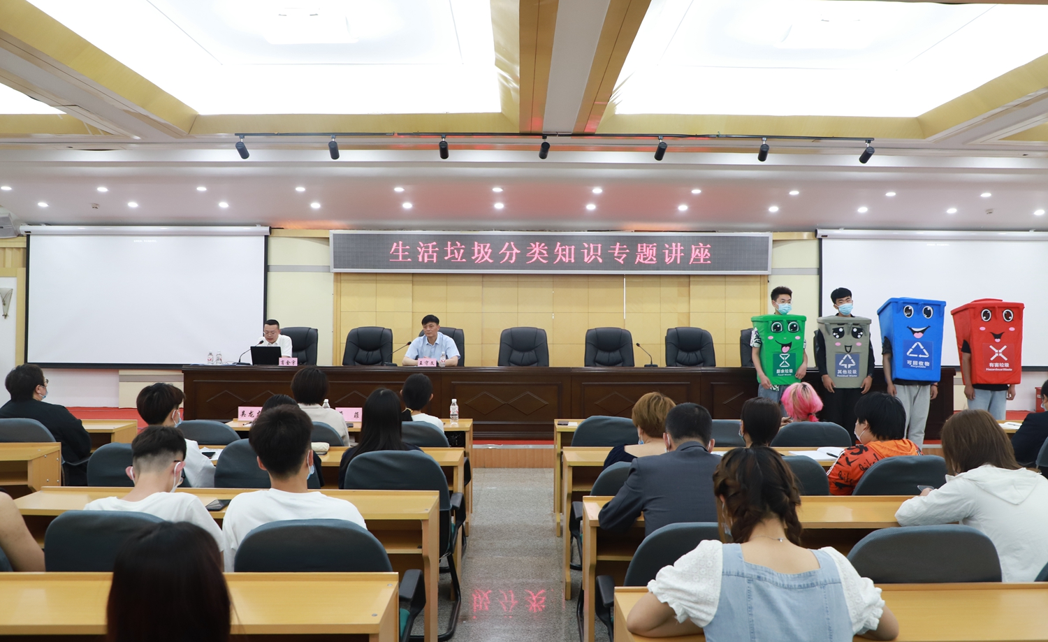 为持续推进我校第33个爱国卫生活动月暨黑河学院校园生活垃圾分类工作的有序有效开展,引导全校师生养成良好的垃圾分类习惯,6月9日,后勤管理处邀请黑河市生活垃圾分类办公室肖金宇作《开展生活垃圾分类共建美丽文明黑河》专题讲座。各二级学院学团办主任、学生代表,学生公寓楼长、保洁经理、保洁员,社会化企业、餐饮中心代表参加讲座。